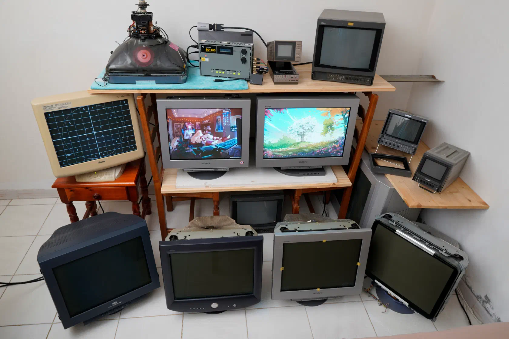 The state of my CRT tube collection, in June 2020. Not a lot has changed since then. These are unique models, multiple quantities of the same tube are not shown here.